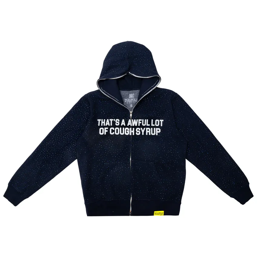 Cough Syrup Rhinestone Hoodie printed in Los Angeles, with all-over crystal detailing throughout the Hoodie.