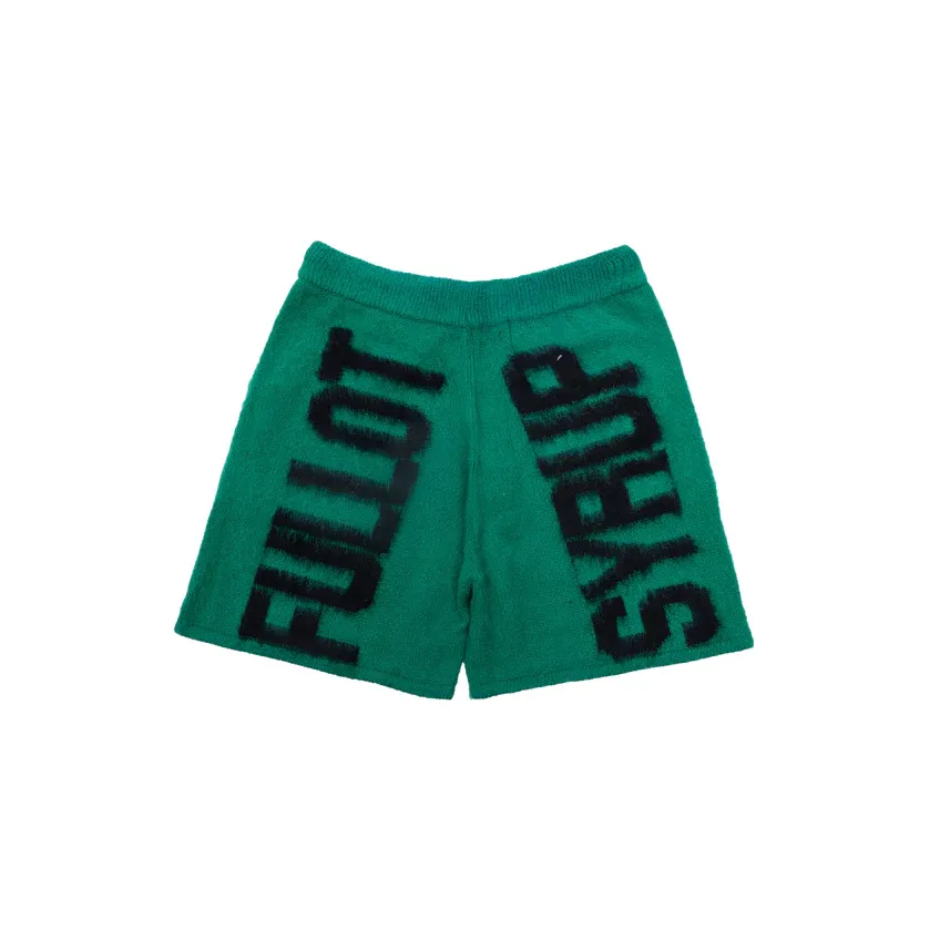 Mohair shorts with Cough Syrup logos intarsia-knitted across front crotch and back legs.